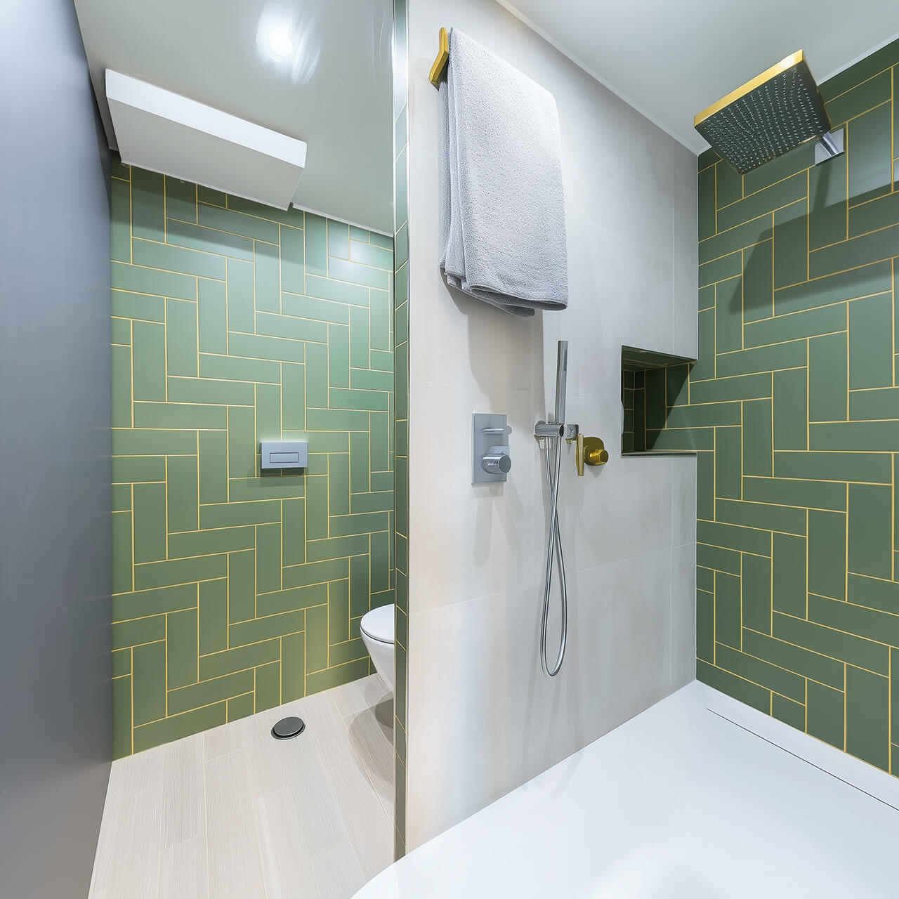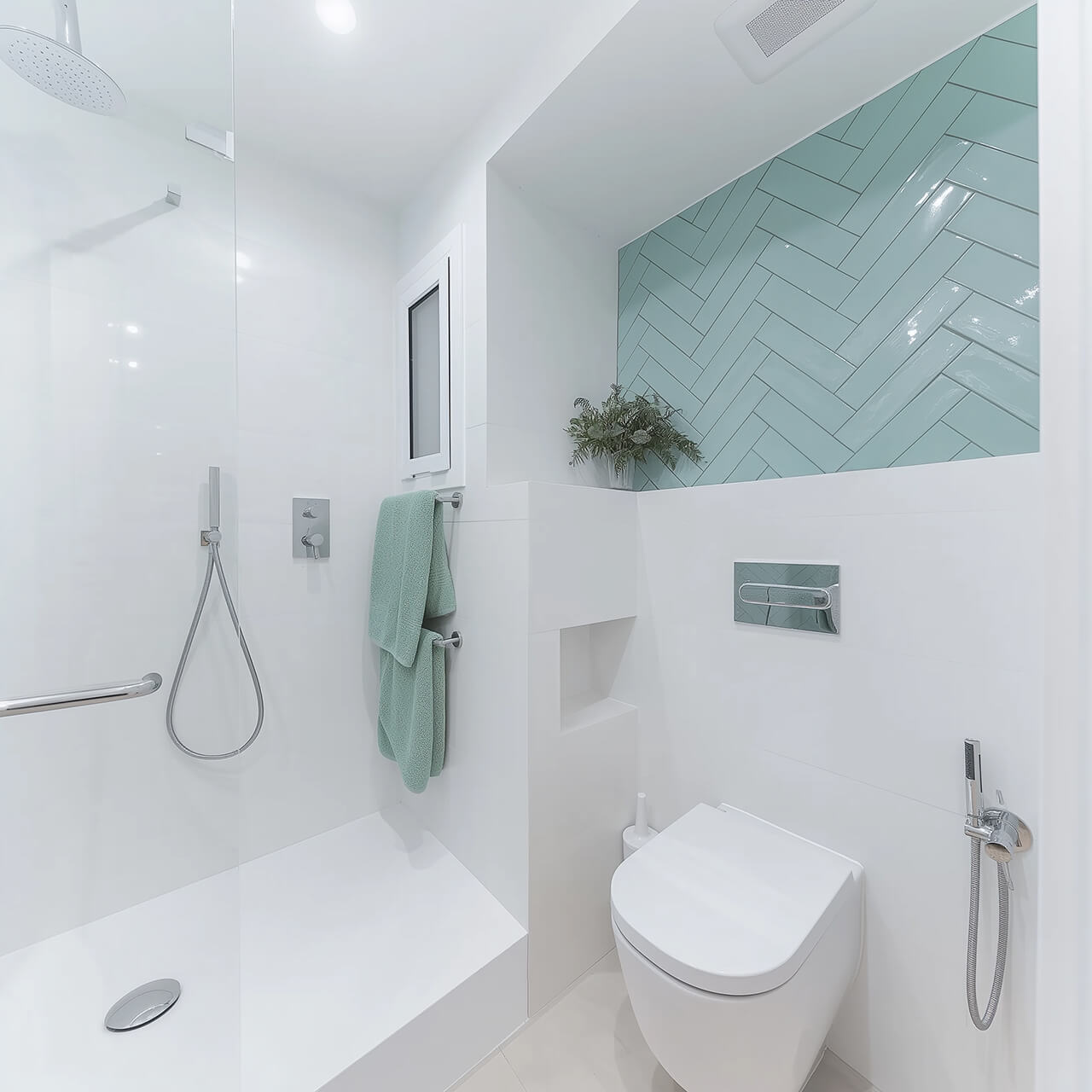 - חדר אמבטיה בצבעים ניטרליים רגועים