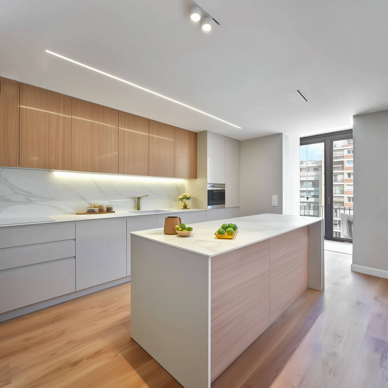 - Лаконикалық палитрадағы ыңғайлы заманауи ас үй