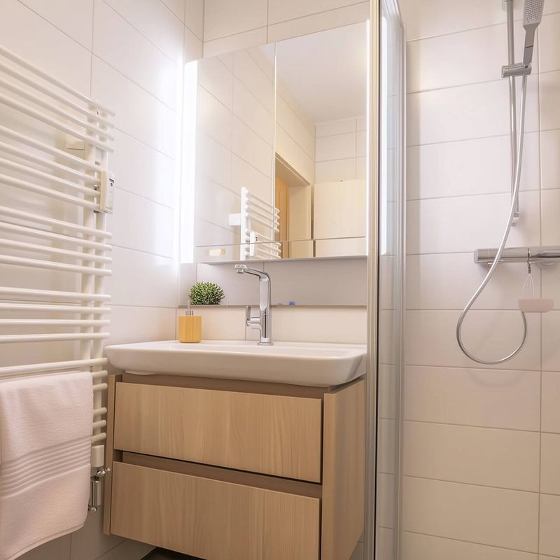 Ванная комната в современном стиле с душевой кабиной и качественной отделкой