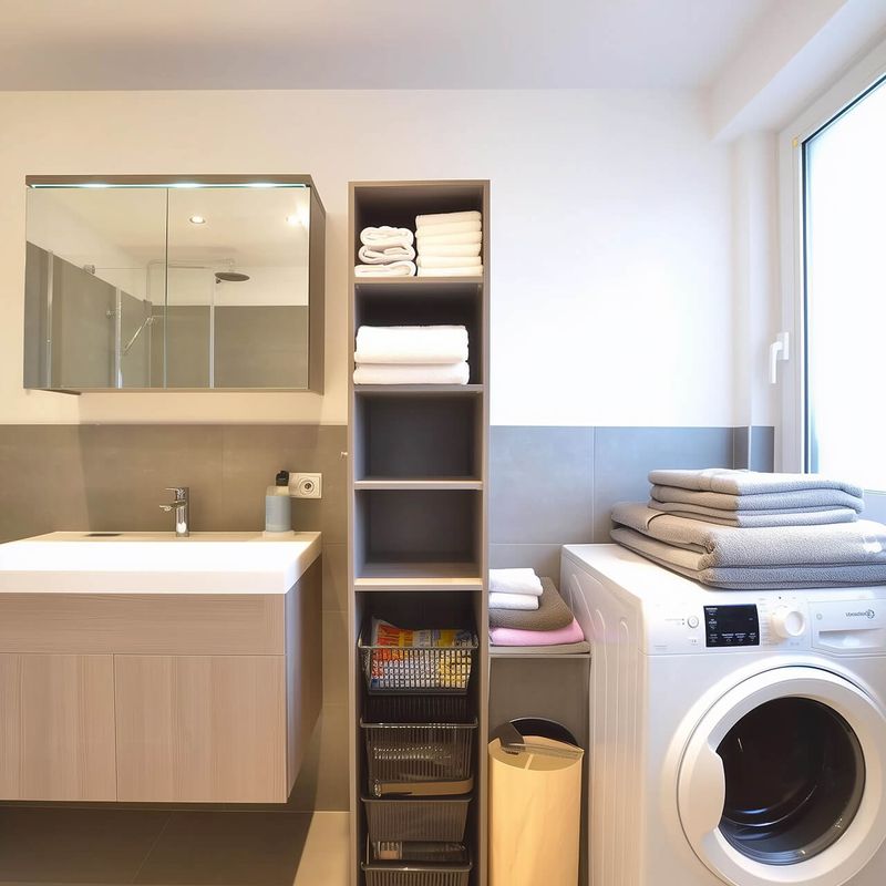 Ванная комната с душевой кабиной и современными отделочными материалами