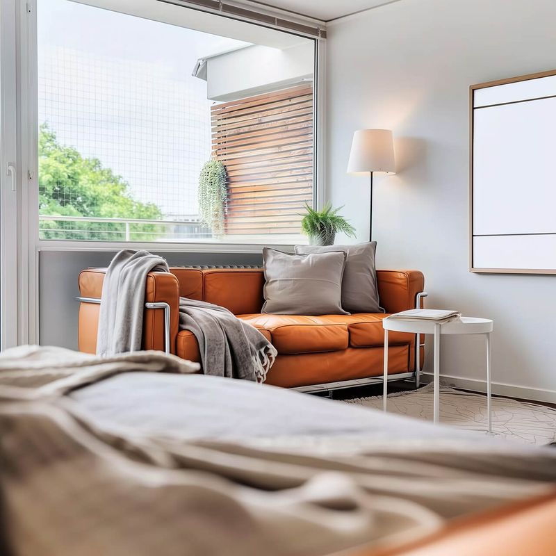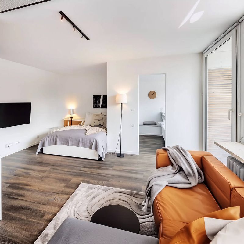 светлая жилая комната с удобной зоной отдыха и возможностью выделить рабочее место