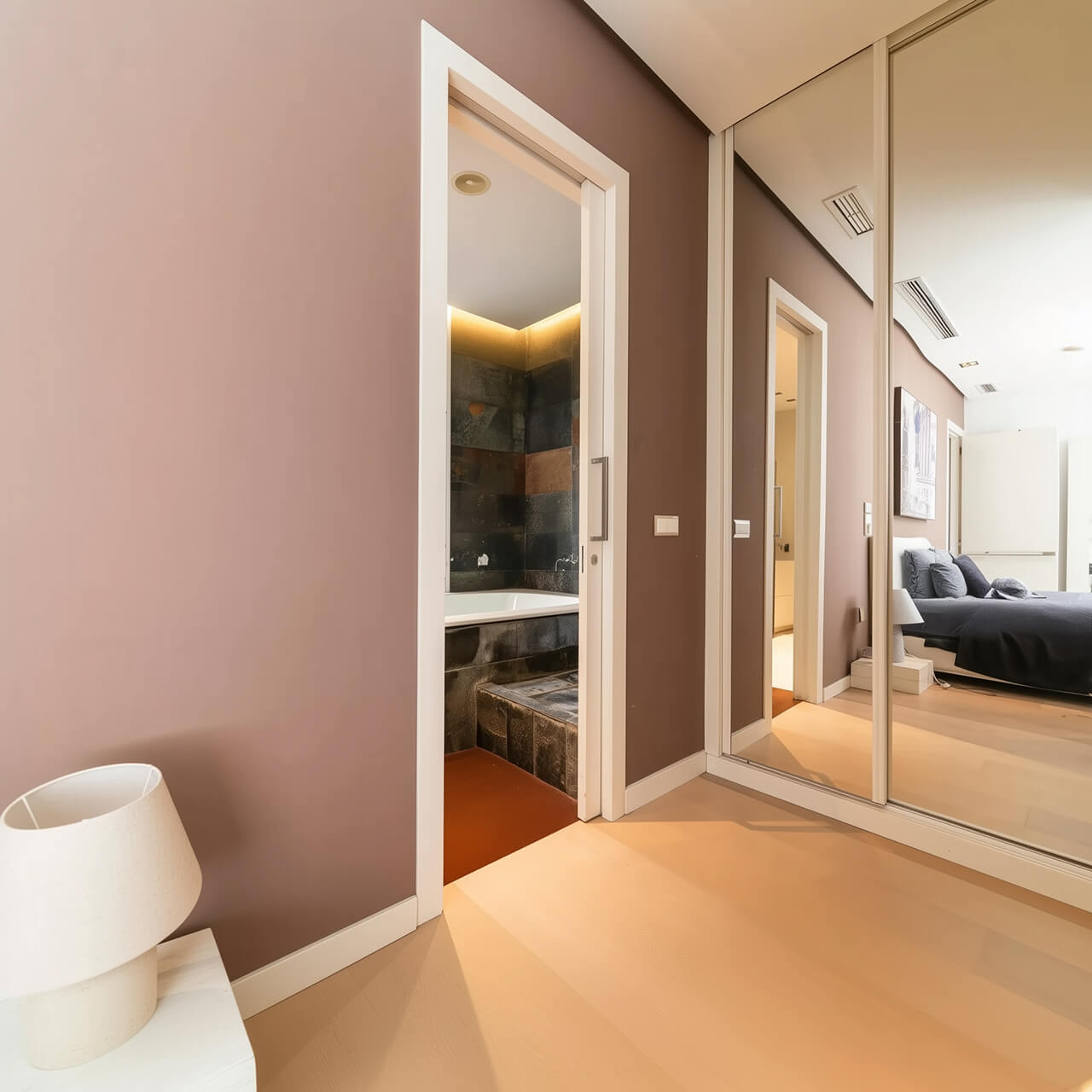 - Много встроенного хранения и зеркальные фасады в прихожей