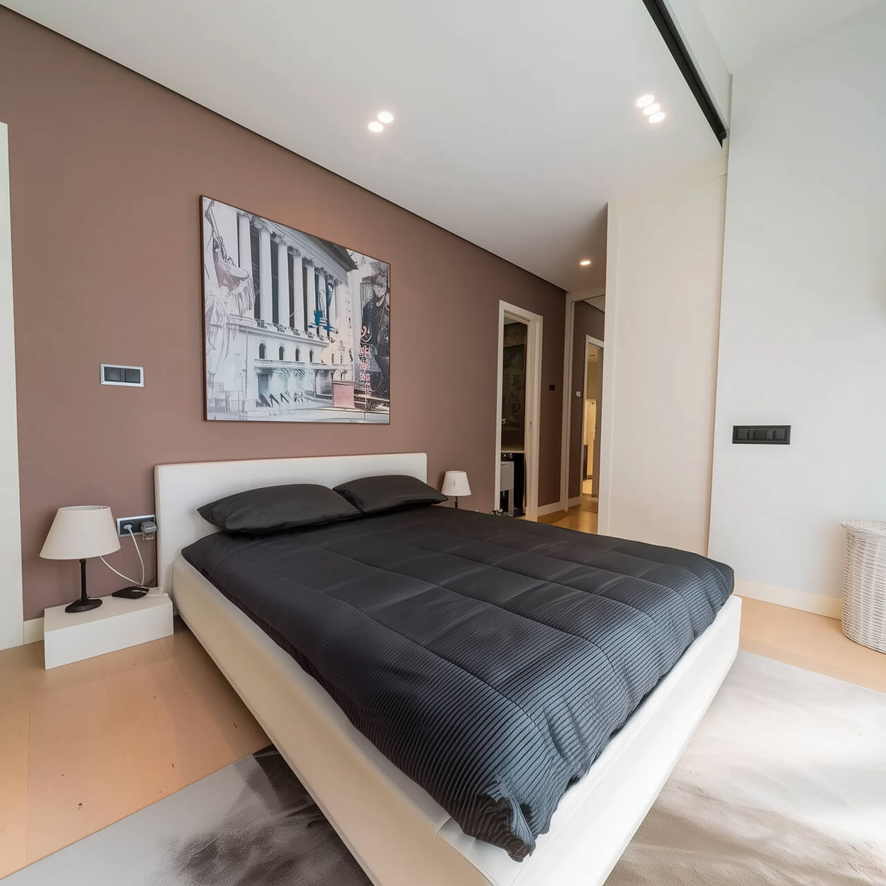 - Спальня с местом под двуспальную кровать и прикроватные тумбы