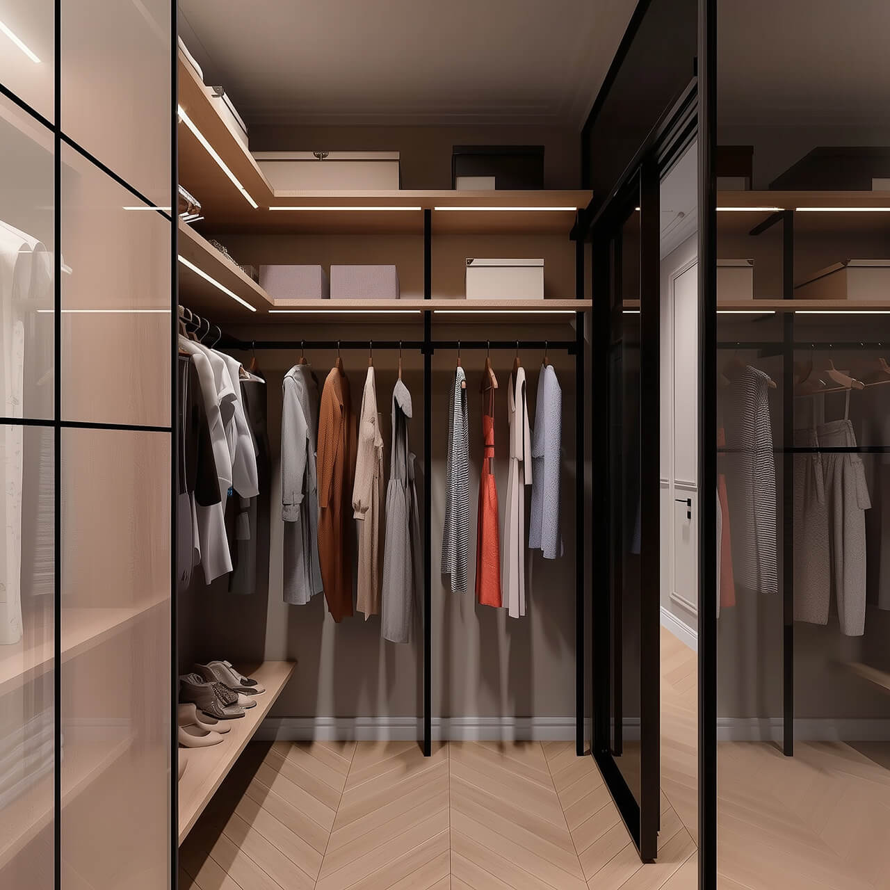 - Гардеробная или вместительная зона для хранения одежды и обуви