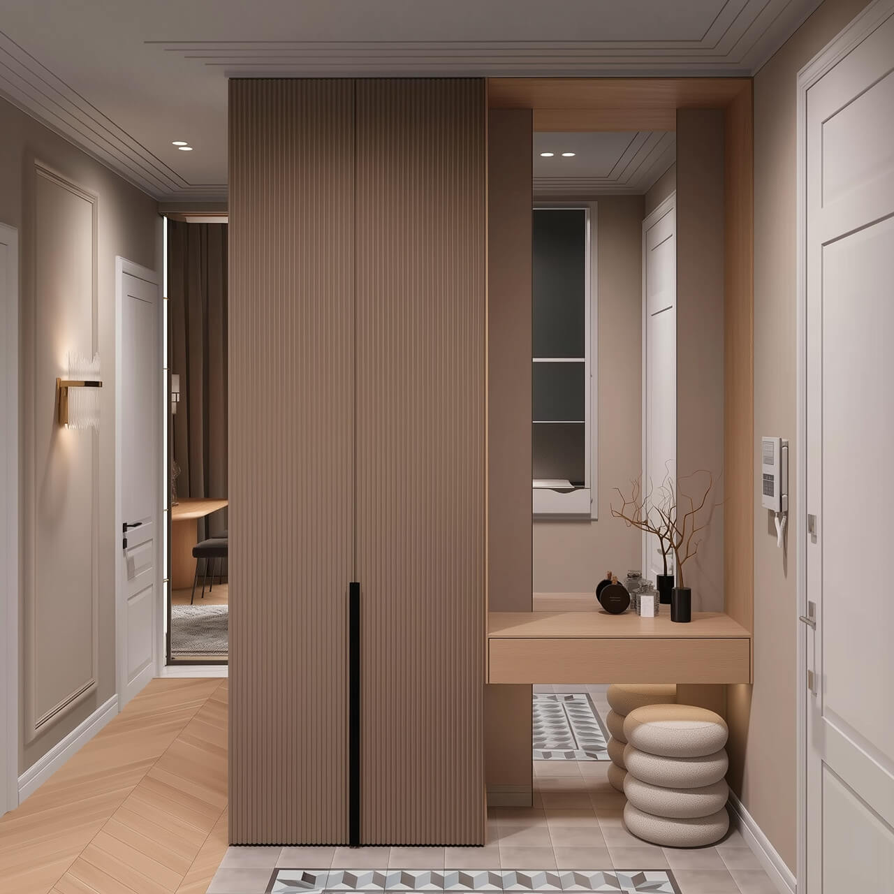 - Уютный холл с встроенными шкафами