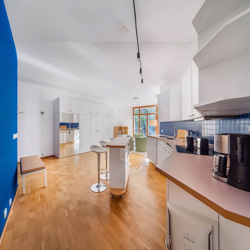 Квартира расположена в престижном 7-м районе Вены — Neubau. Этот район известен своей творческой атмосферой, галереями современного искусства, модными бутиками, уютными кафе и ресторанами. Здесь кипит культурная жизнь: рядом MuseumsQuartier, Volkstheater, театры и концертные залы. Отличная транспортная доступность: линии метро U3, трамваи 46, 49 и автобусы позволяют быстро добраться до центра города и других районов.