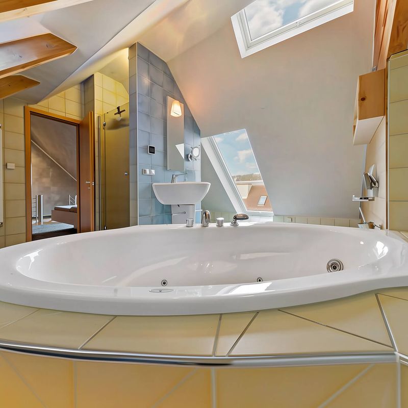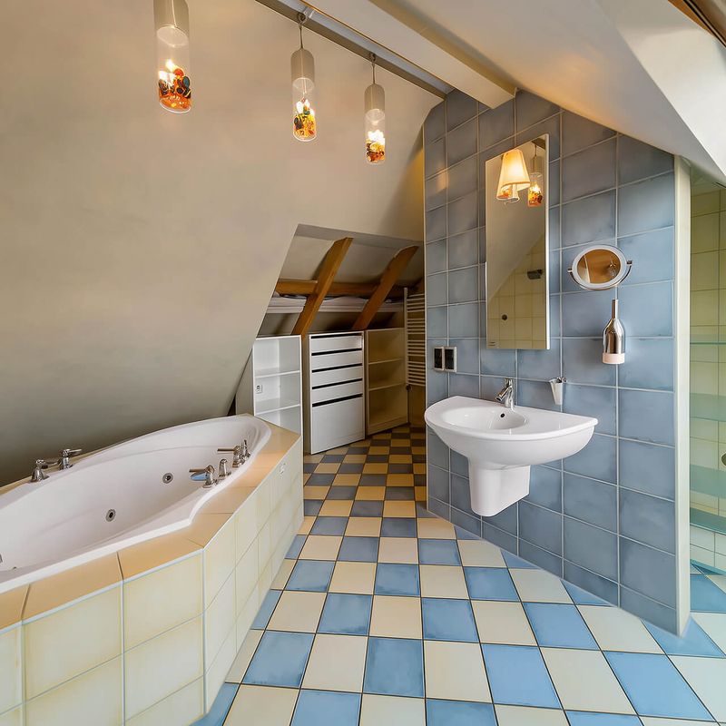 Ванную комнату с джакузи, дизайнерской плиткой и качественной сантехникой