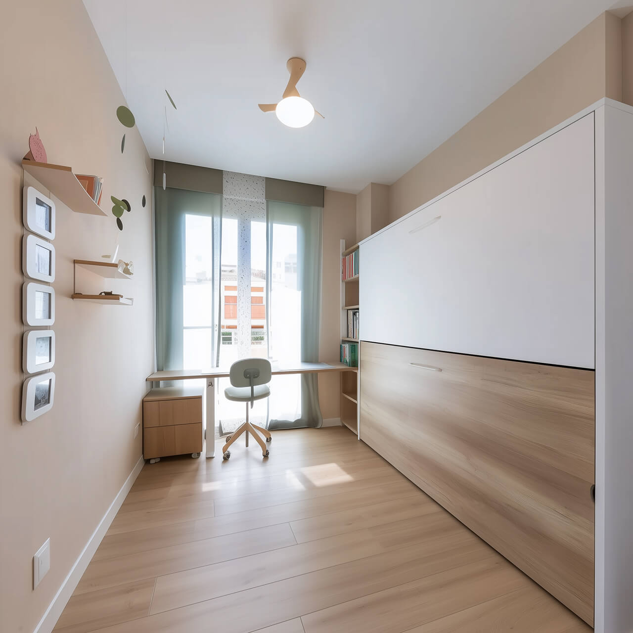 - Вторая комната с рабочим столом у окна и кроватью-трансформером