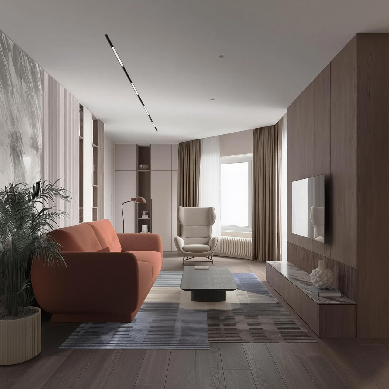 3-комнатная квартира площадью 75 м² — светлое и продуманное пространство с удобной планировкой, в котором паре или семье легко организовать комфортную повседневную жизнь.