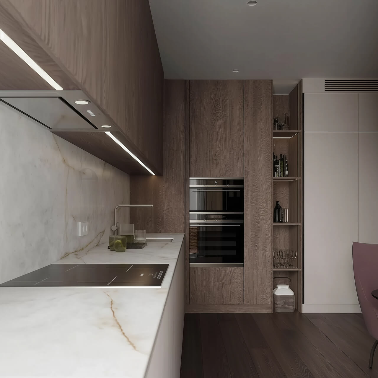 - Удобная кухня с рабочей поверхностью