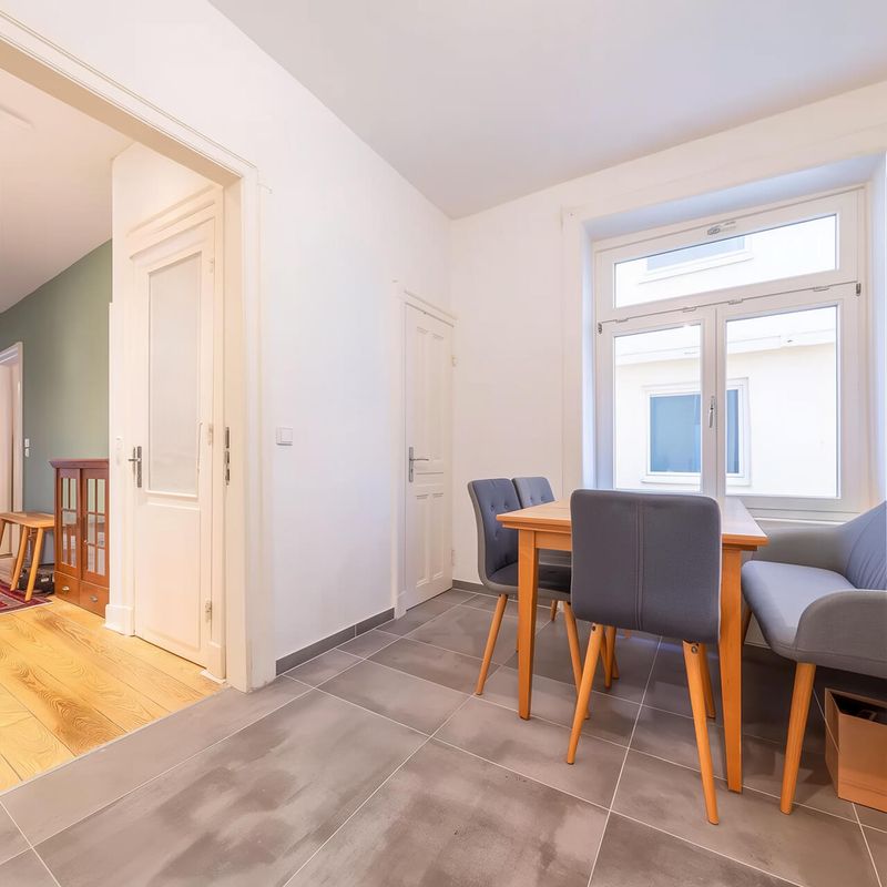 Просторная и светлая квартира площадью 71 м², расположенная в ухоженном историческом доме 1914 года постройки. Здание сохраняет классический венский стиль, а сама квартира сочетает атмосферу старого фонда с современным комфортом. Высокие потолки, большие окна и продуманная планировка делают жильё максимально удобным и уютным.