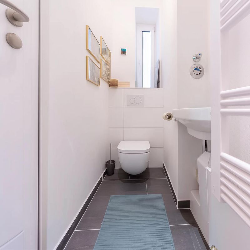 Ванная комната в стильном минималистичном дизайне с качественной сантехникой.