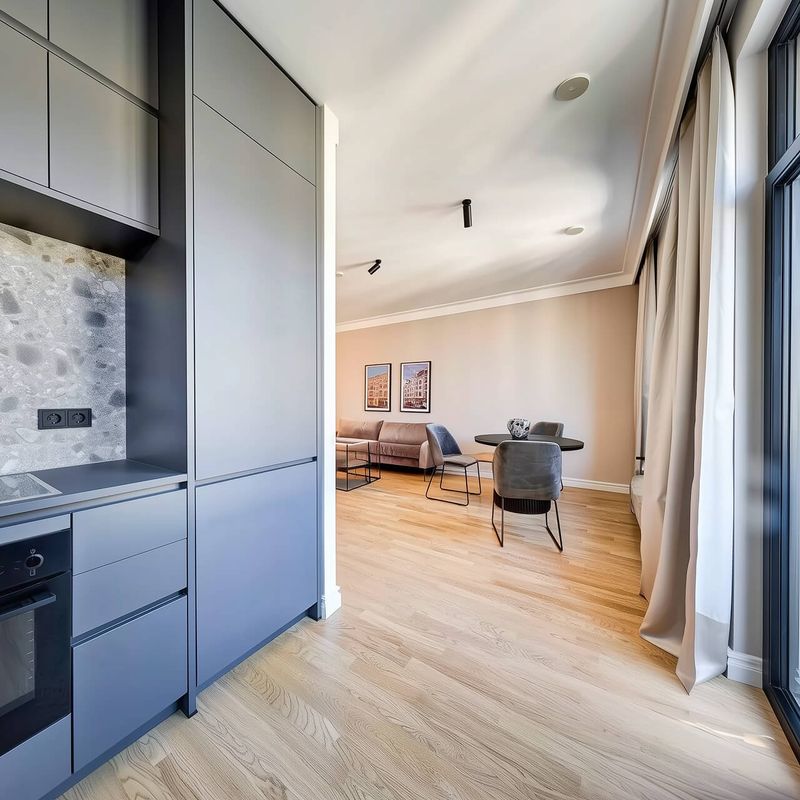 Просторная квартира площадью 107 м² расположена в отреставрированном историческом доме начала XX века. Интерьер выполнен в современном стиле с акцентом на свет и функциональность. Пространство продумано для комфортного проживания семьи или для сдачи в аренду с высоким доходом. Особенности квартиры: