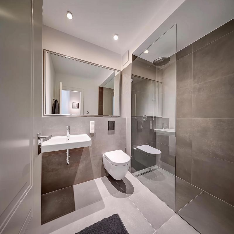 Элегантная ванная комната с премиальной отделкой и душевой кабиной