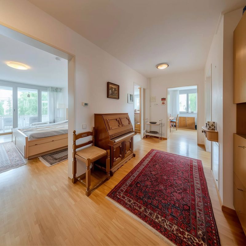 Квартира находится в 11-м районе Вены — Simmering, известном своими зелёными зонами, спокойной атмосферой и удобной инфраструктурой. В пешей доступности — супермаркеты, школы, детские сады, спортивные и развлекательные объекты. Отличная транспортная доступность: линии метро U3, трамваи 6, 11, 71, автобусы, а также быстрый выезд к главными дорогам города.
