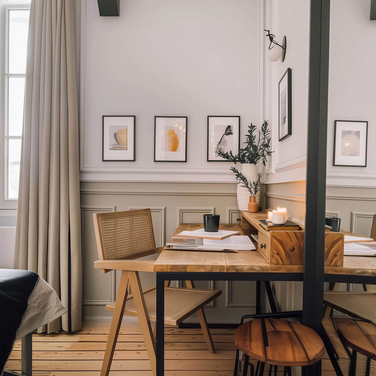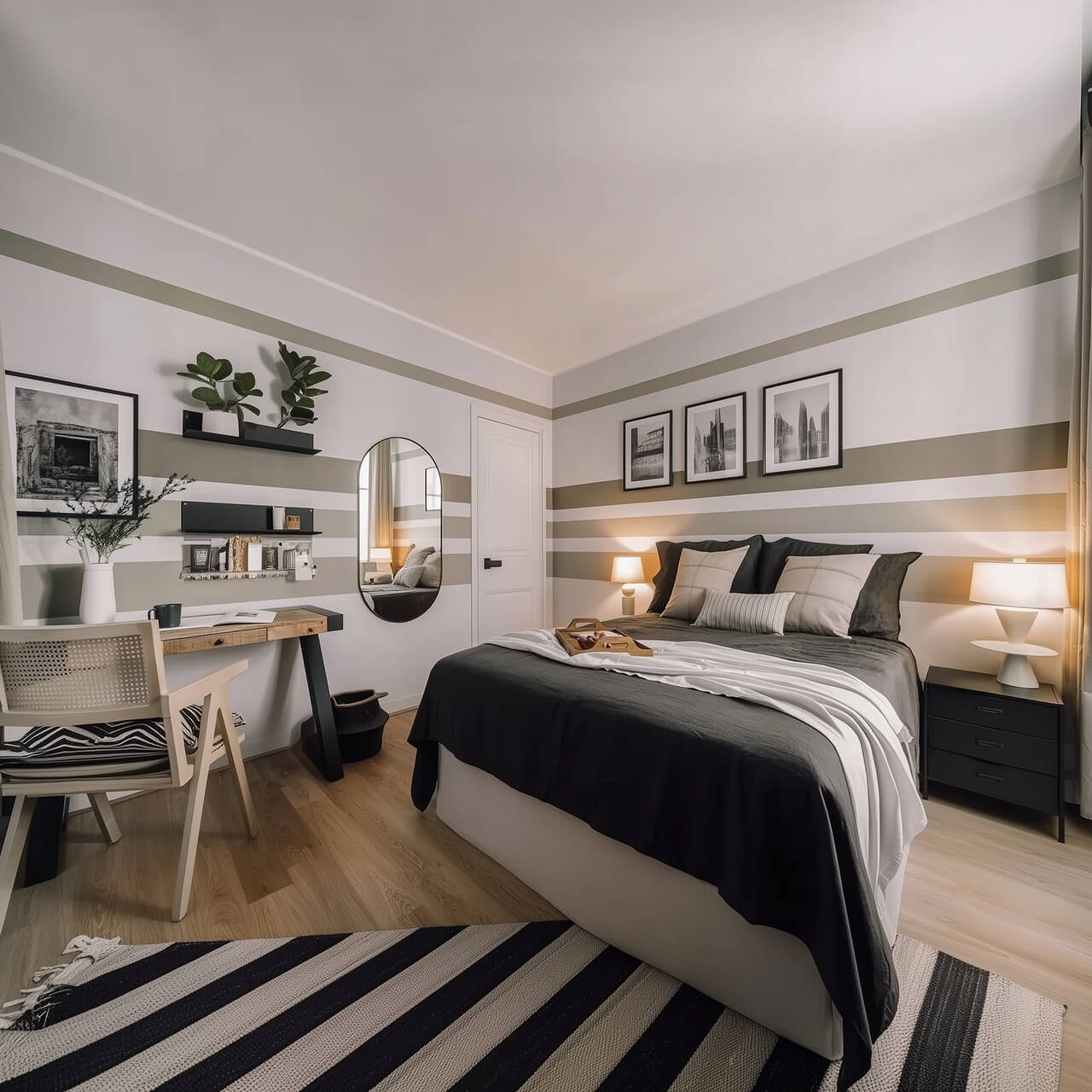 - Нейтральные стены и аккуратное напольное покрытие, которые подходят под разные стили интерьера