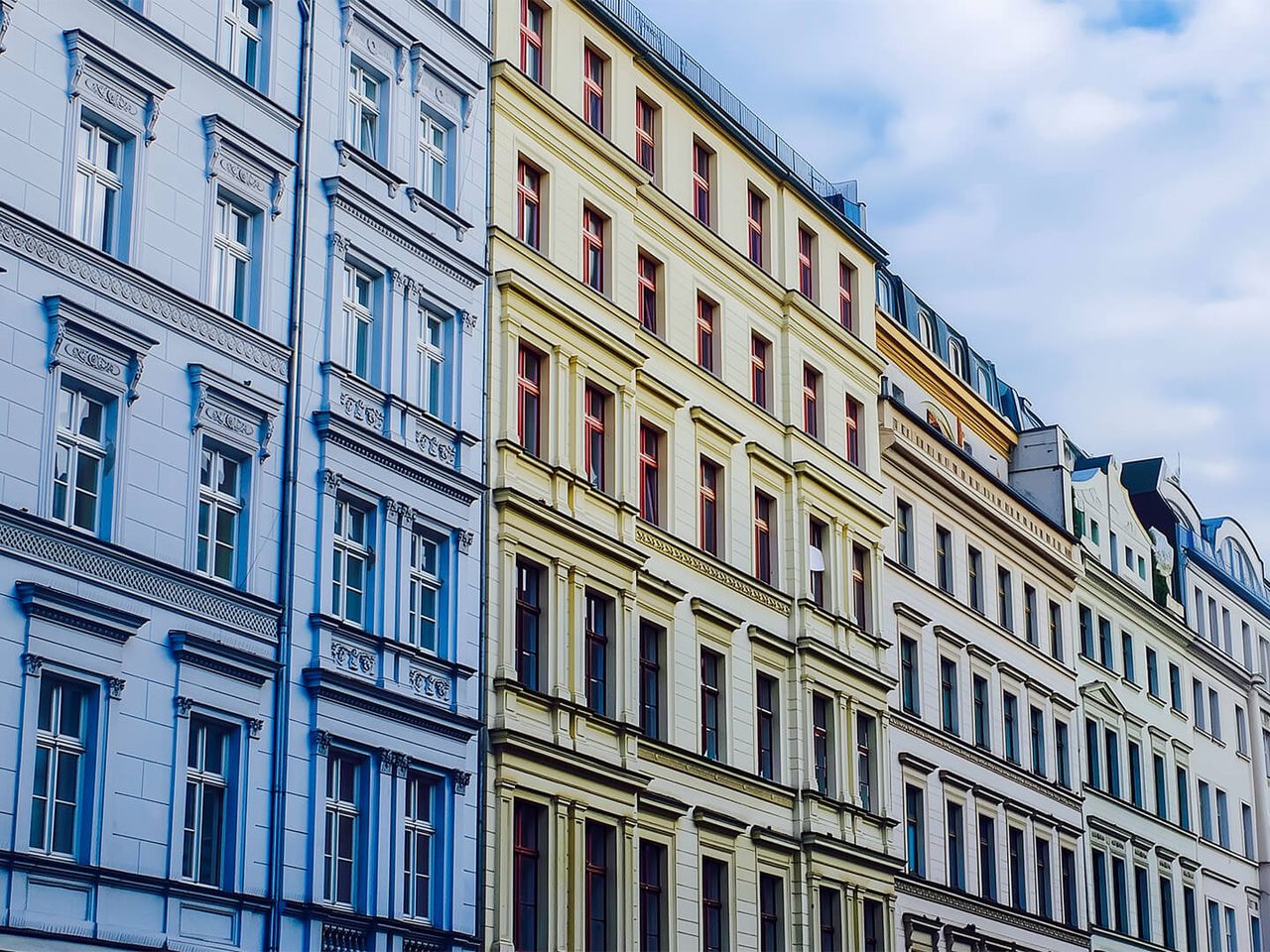 Исторический дом с ухоженным фасадом и зелёным двором