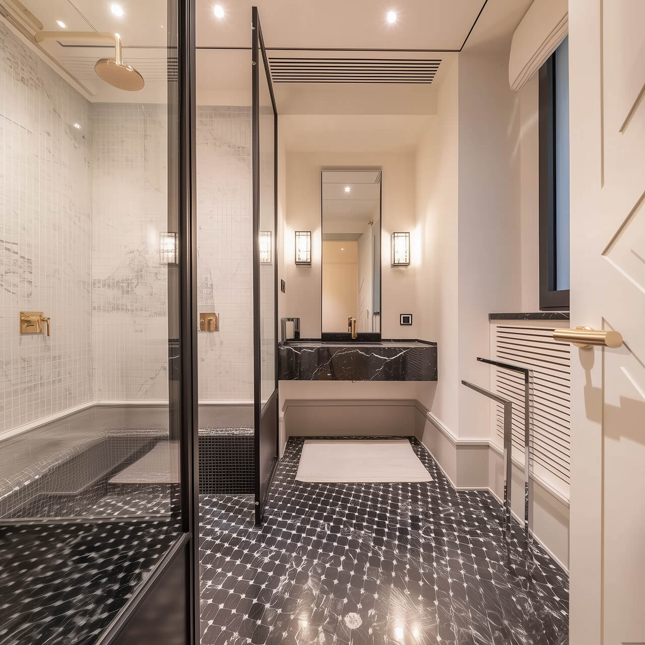 - Санузел в спокойной нейтральной отделке