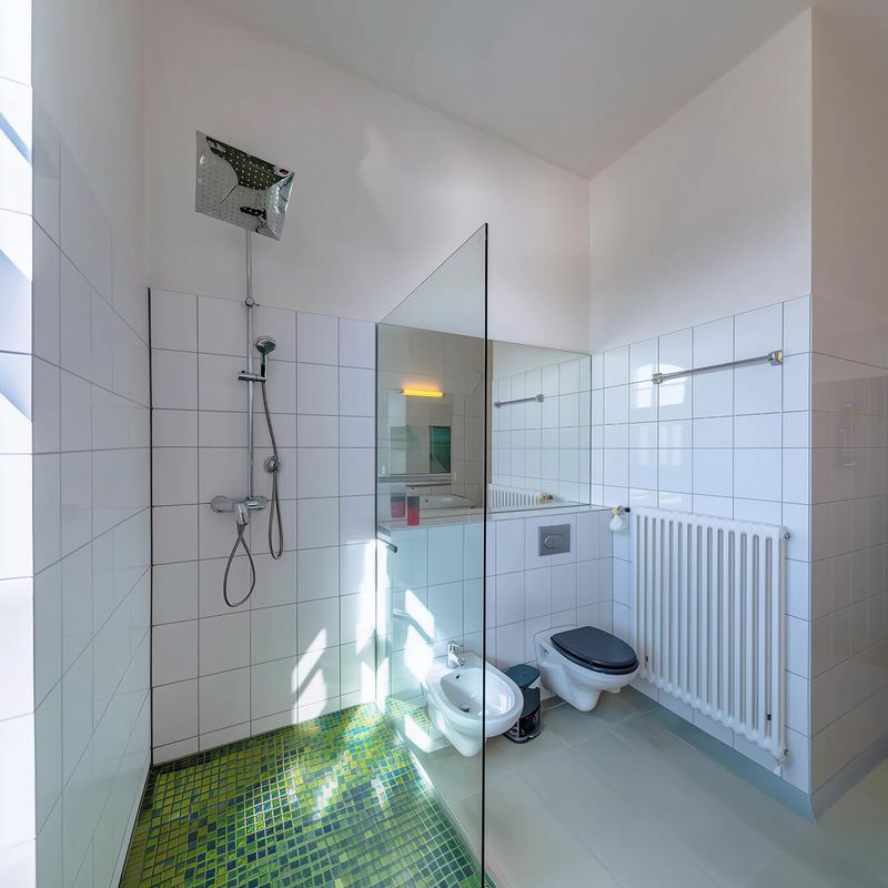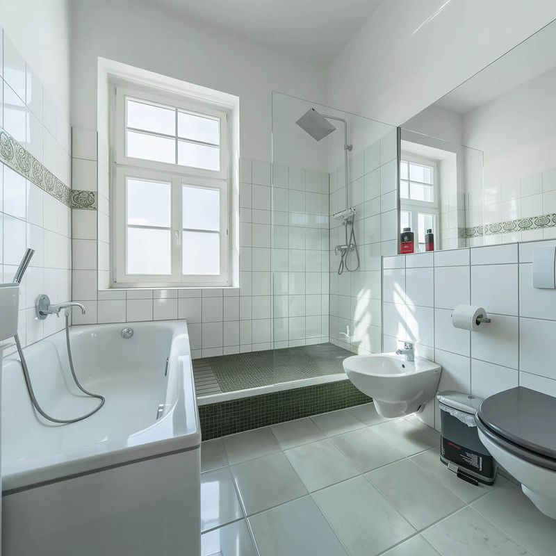 Стильная ванная комната с душевой и ванной, современная сантехника