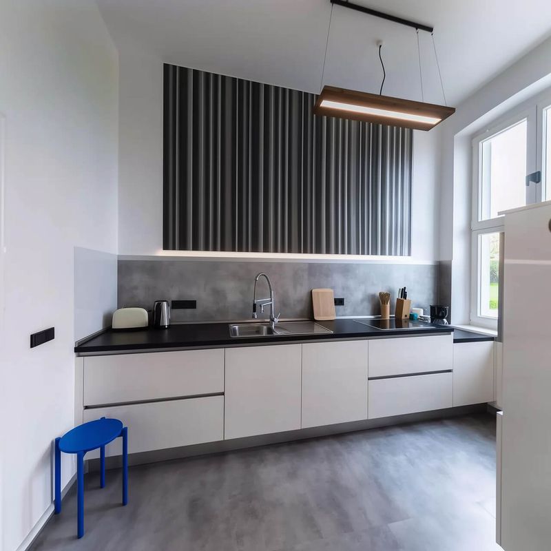 Современная кухня с премиальной встроенной техникой и зоной для завтраков
