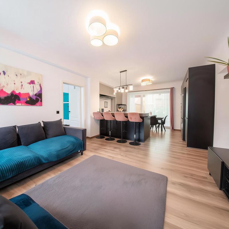 Просторная и уютная квартира площадью 90 м² расположена в доме с современным фасадом и ухоженной территорией. Интерьер продуман с акцентом на комфорт, свет и функциональность: