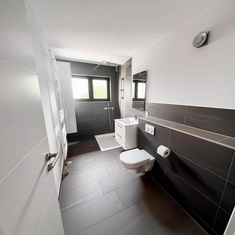 Ванную комнату с душем, плиткой и качественной сантехникой