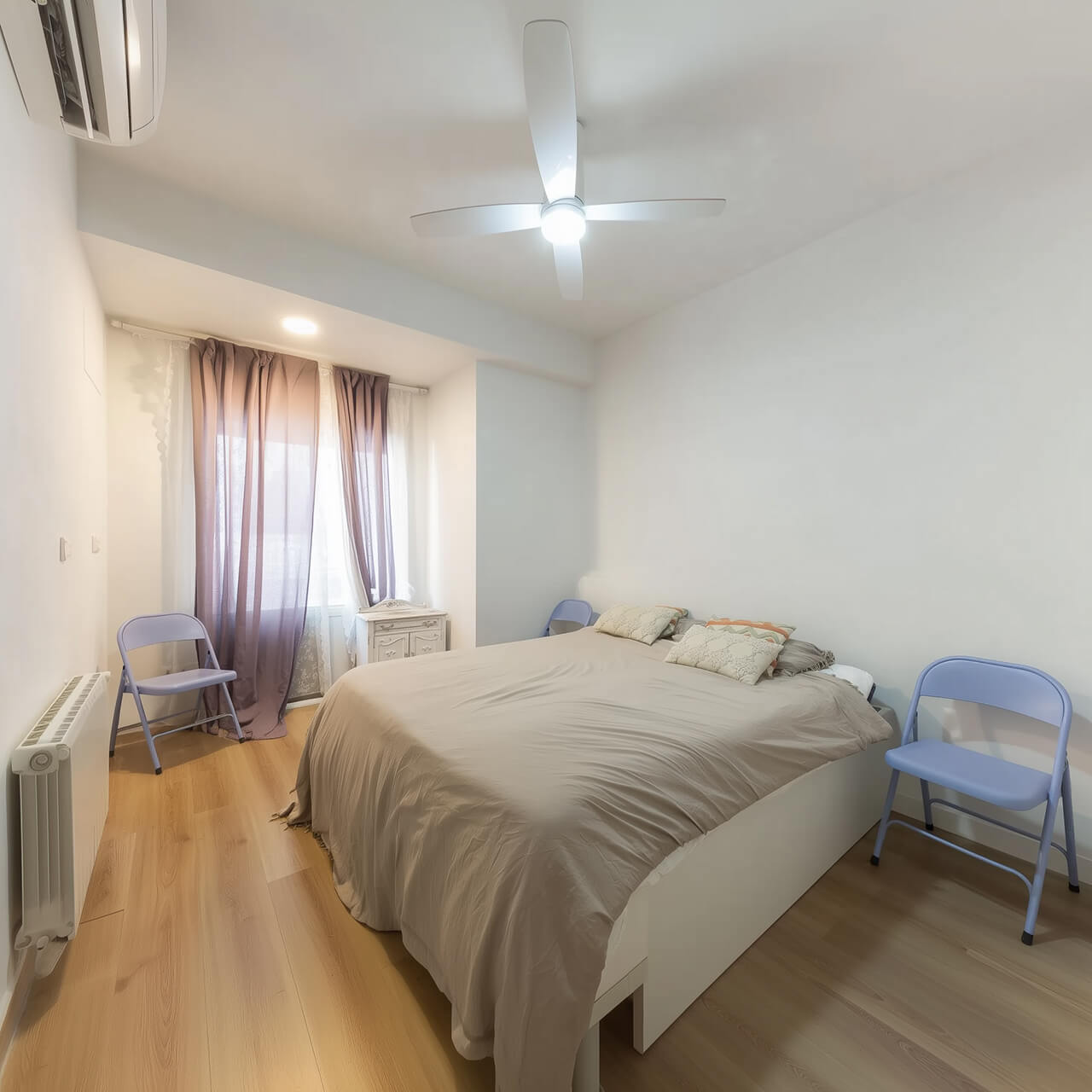 - Комфорт в жаркий сезон: потолочные вентиляторы и кондиционер в спальне