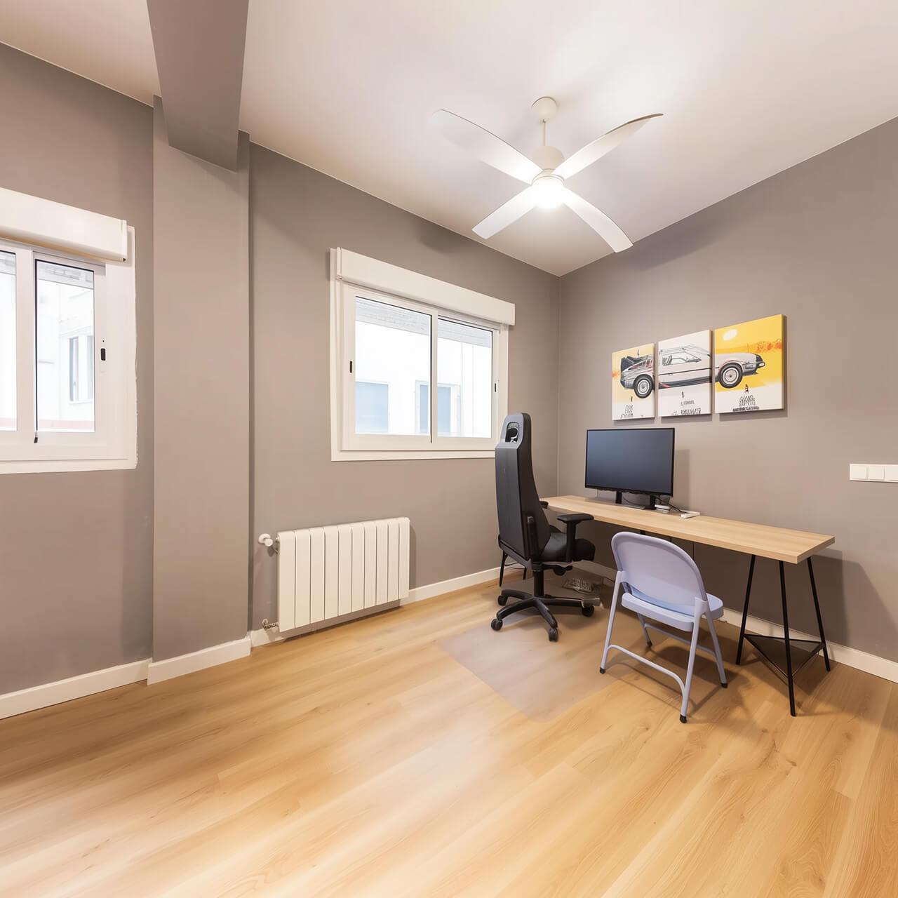 Эта 4-комнатная квартира площадью 100 м² подойдёт для семьи, пары с домашним офисом или для аренды. Планировка разделяет общую зону и приватные комнаты, поэтому удобно сочетать совместное пространство и личные комнаты.