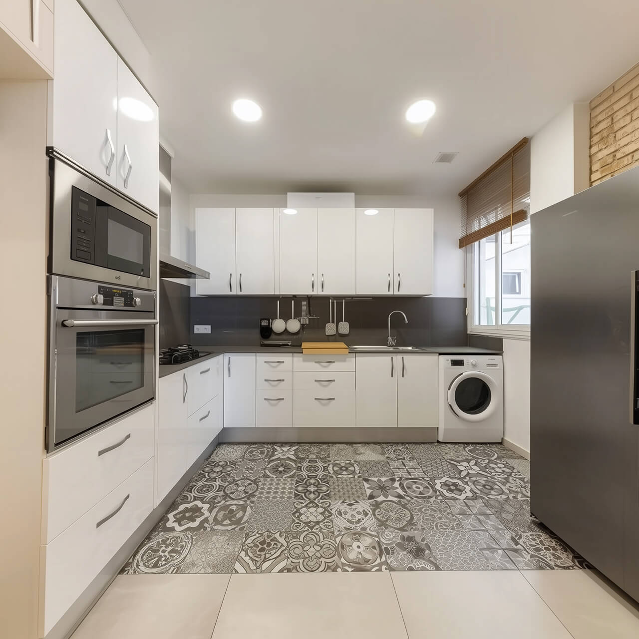 - Отдельная кухня со встроенной техникой и местом под стиральную машину