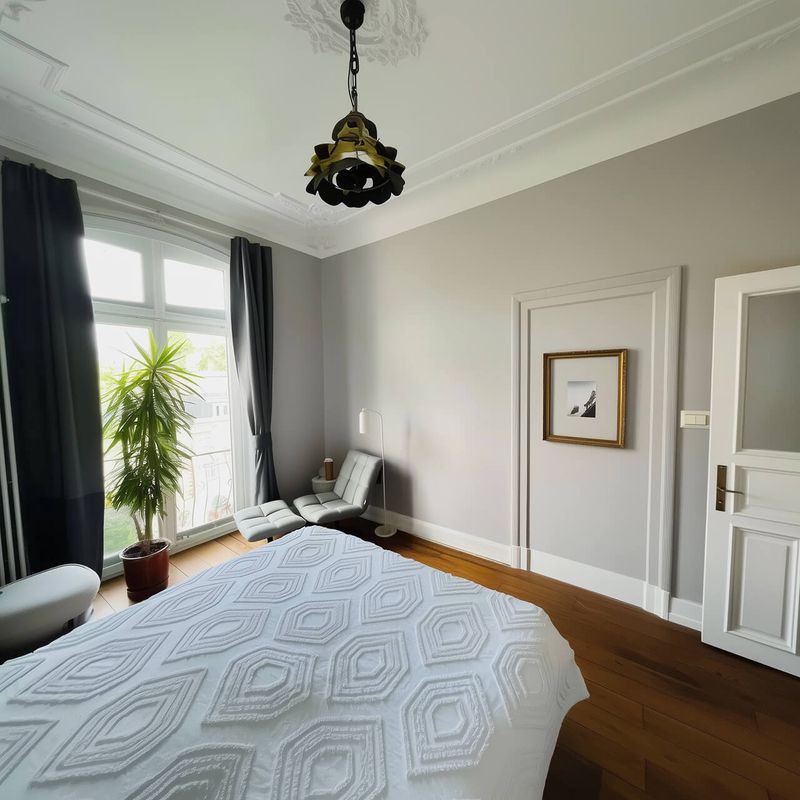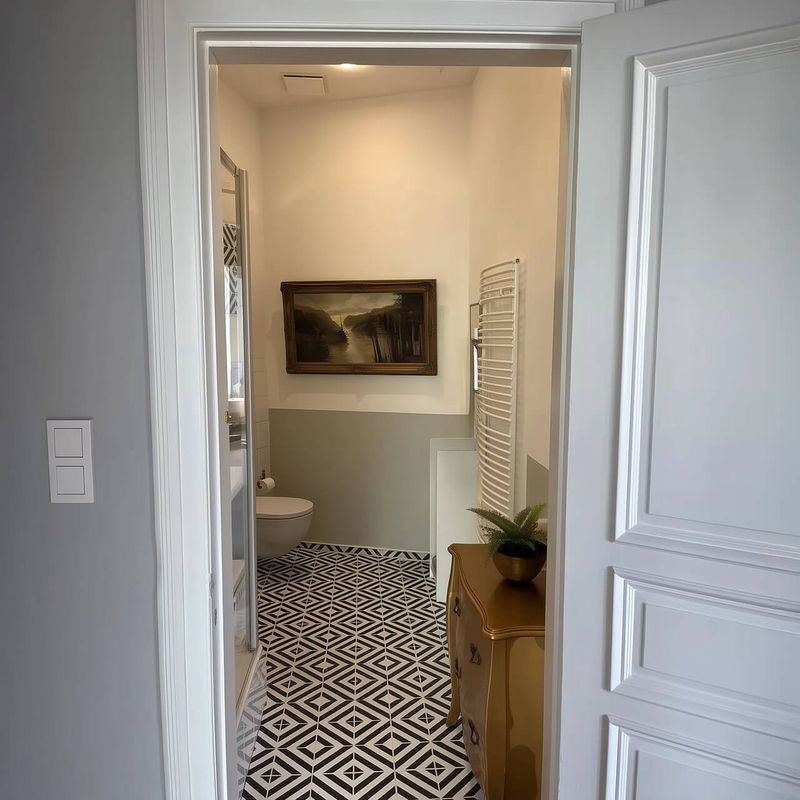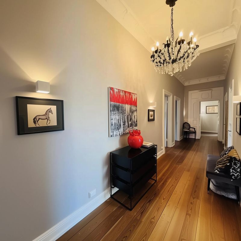 Просторная квартира площадью 165 м² расположена в доме 1919 года с историческим шармом: высокие потолки, большие окна, натуральный паркет и оригинальная лепнина создают атмосферу классического венского стиля. Интерьер был обновлён с сохранением исторических элементов и дополнен современными решениями для комфортного проживания: