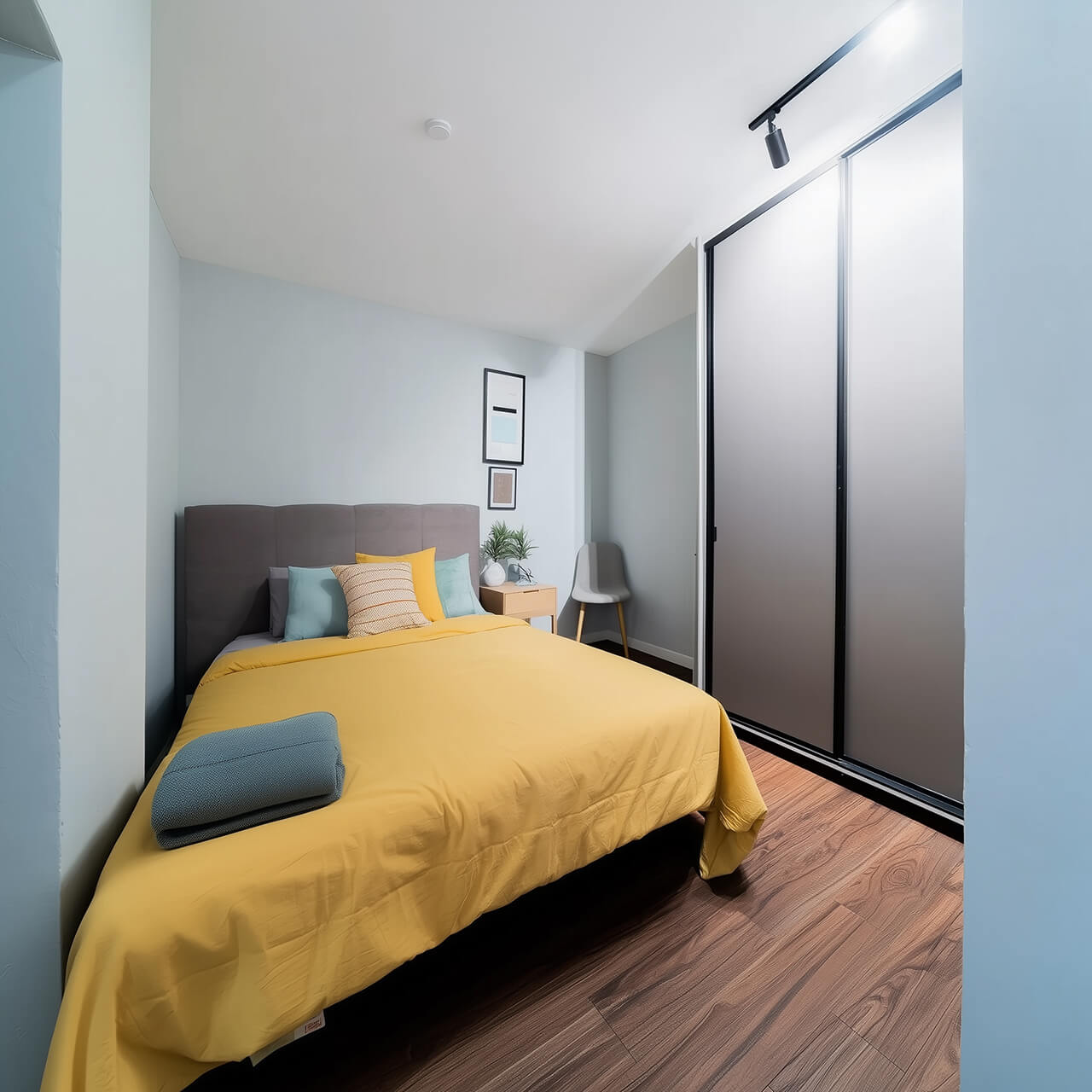 Квартира — в современной городской стилистике: лаконичные формы, спокойные цвета и много дневного света. Встроенные решения для хранения помогают поддерживать порядок, а места для рабочего уголка позволяют комфортно учиться и работать из дома.